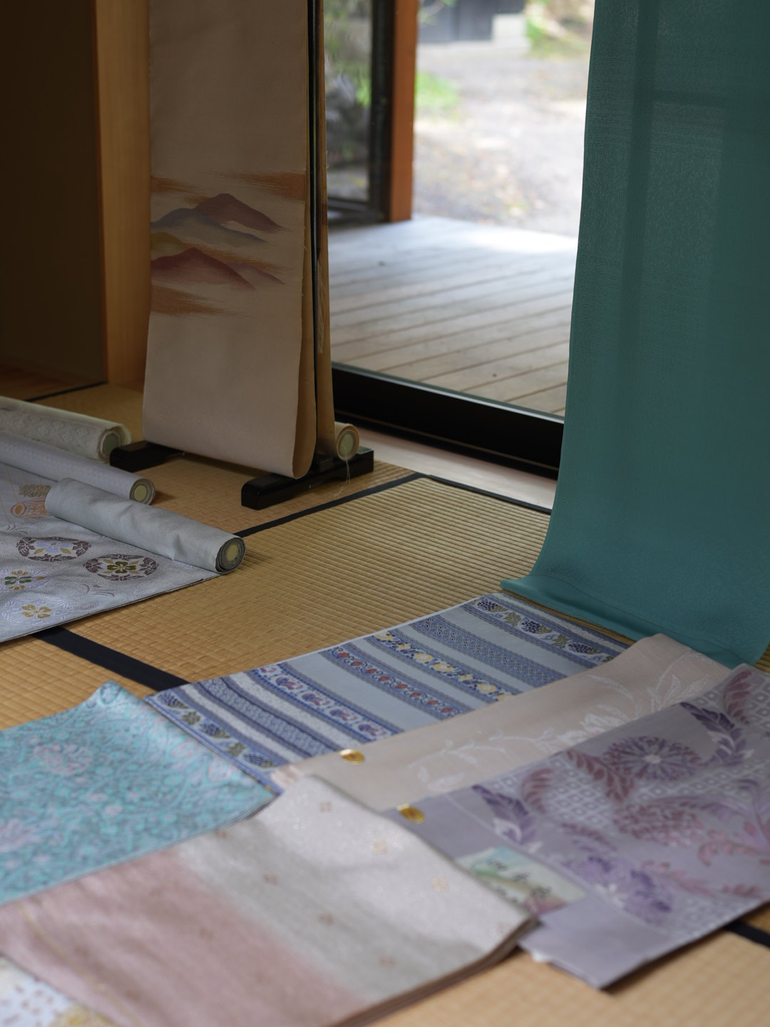 何本か帯を合わせてみて、「着物1枚に帯3本」の意味が腑に落ちます。